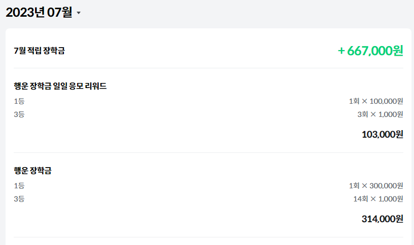 1등의 확률이 희박하다고 생각했는데, 매일 꾸준히 응모하다 보니 이런 행운이 찾아 왔다.
