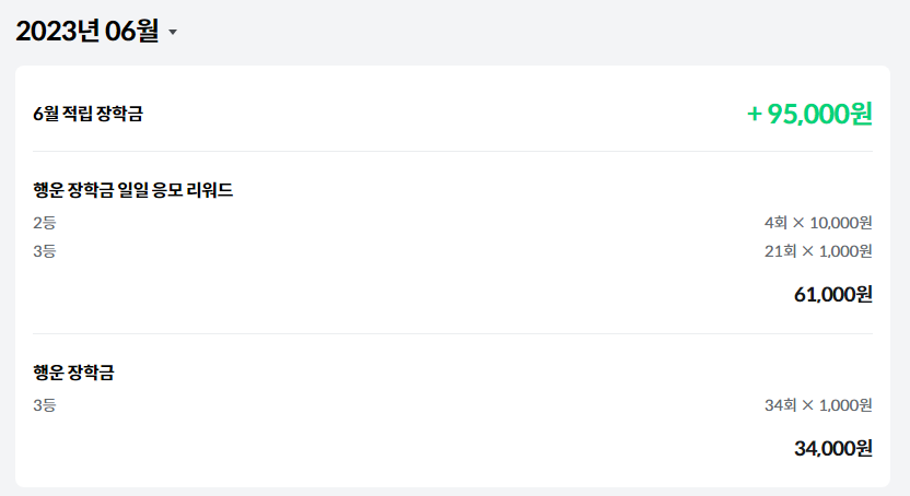 나는 첫달에 장학금으로 95,000원을 받았고,